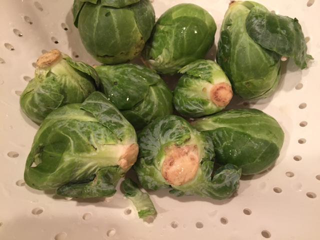 - Rinse the Brussels sprouts and trim off the stem ends. Gently peel away the outer leaves. As you work inward, continue trimming the stem slightly to release more leaves.