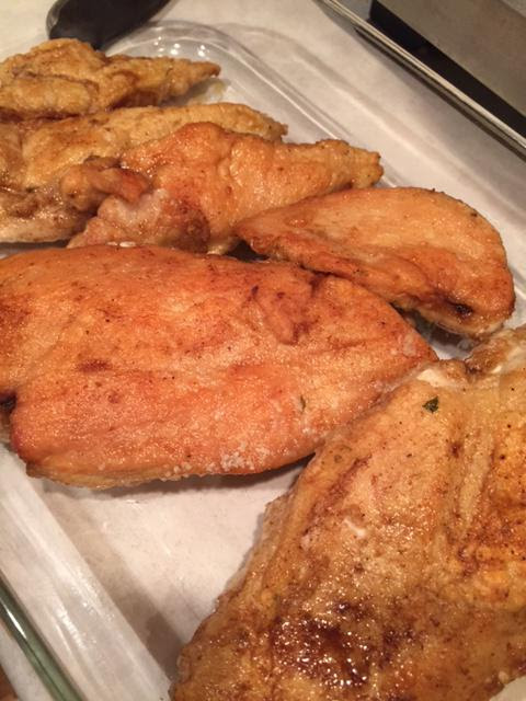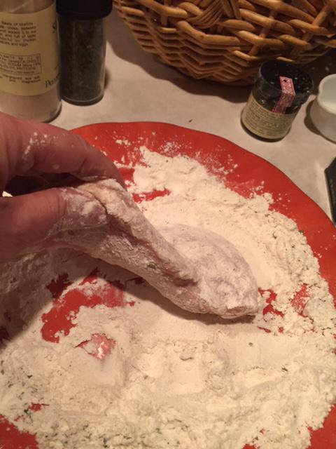 - In a shallow dish, combine the flour, salt, pepper, parsley, and dill. Pat the chicken dry and dredge each piece lightly in the seasoned flour.