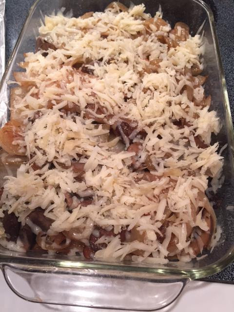 - Remove the foil, sprinkle the shredded Gruyère over the top, and return to the oven uncovered for 10 to 15 minutes, until the cheese is melted and bubbly.
