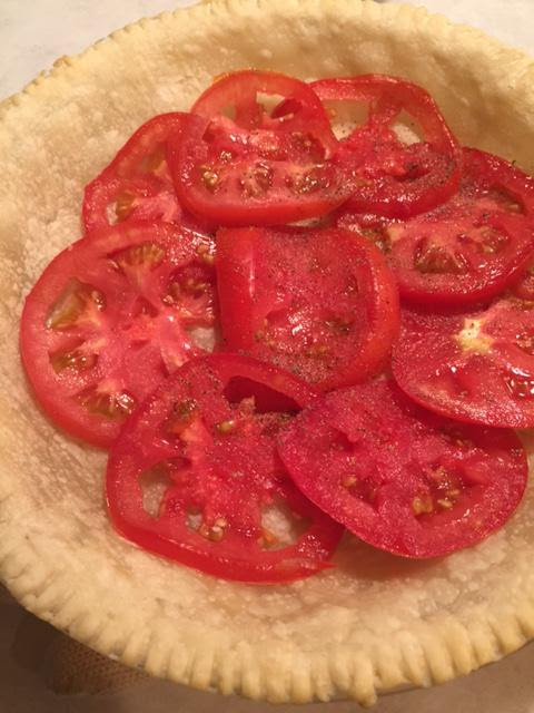 • Place the tomato slices in a single layer in a colander. Sprinkle lightly with salt and let drain for 30 minutes. Pat very dry with paper towels to prevent a soggy pie.